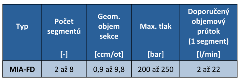 Dělič průtoku typu MIA-FD je modulární auto-kompenzační zubový dělič průtoku, který je vysoce přesný (přesnost 1,5 % při tlakové diferenci mezi spotřebiči do 170 barů). Vyrábí se ve dvou provedeních.