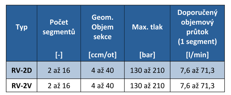 - RV-2V - verze s antikavitačními ventily a fázovou korekcí pomocí pojistných ventilů. Umožňuje korekci v obou směrech (dělení i sjednocení toku).