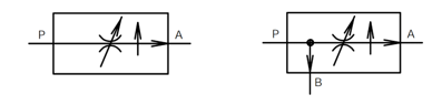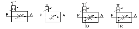 Proporcionální škrticí ventil typu SRR je tlakově kompenzovaný ventil a používá se pro nastavení pracovní rychlosti spotřebiče nezávisle na zatížení. Průtok se reguluje pomocí štěrbinové clony, která je ovládána proporcionální cívkou.