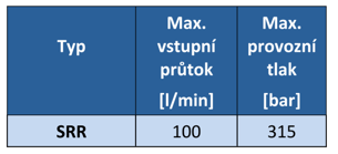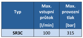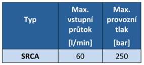 Volitelné rozsahy průtoků: 10, 16, 25, 32, 40, 50 (při viskozitě 35 mm2/s).