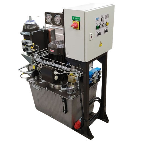 Tyto agregáty jsou střední velikosti, výkon elektromotoru je do 7,5 kW. Lze je dodat s hliníkovou nádrží s objemem až do 70 dm3, s různými variantami čerpadel (zubové s vnitřním/vnějším ozubením, lamelové) a s ventilovým blokem dle přání zákazníka.